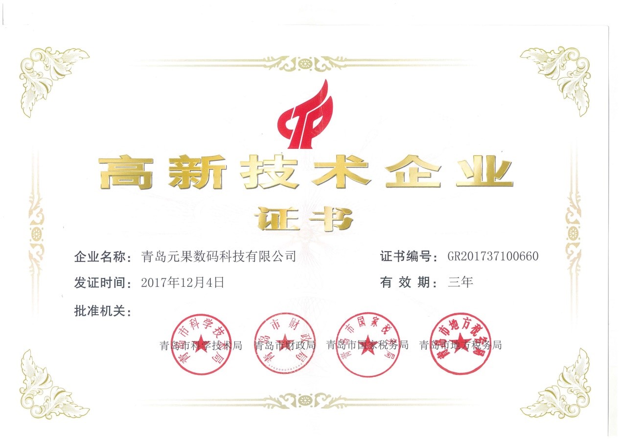 新春伊始,經(jīng)青島市科技局核準(zhǔn)、國(guó)家科技部備案公示,青島元果數(shù)碼科技有限公司被認(rèn)定為2017年度高新技術(shù)企業(yè)。這是對(duì)青島元果公司技術(shù)創(chuàng)新、管理創(chuàng)新全面、系統(tǒng)的高度評(píng)價(jià)和認(rèn)可。