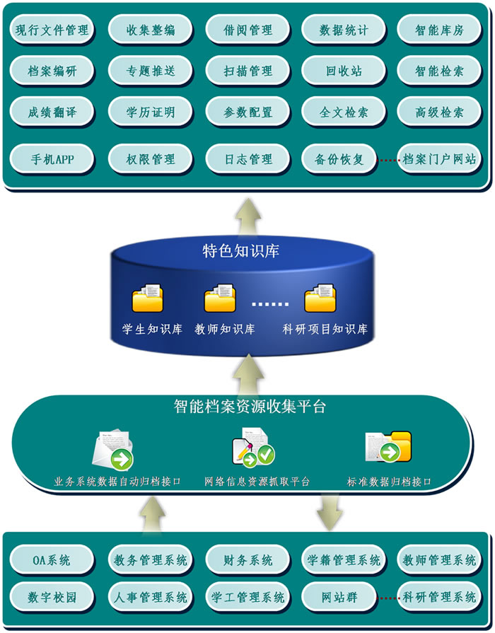 2、系統(tǒng)自動將所有檔案資源梳理分析后,形成各類特色(項(xiàng)目、設(shè)備、學(xué)生、教師等)知識庫,實(shí)現(xiàn)檔案資源的知識化管理和利用。