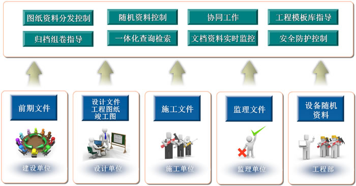 4、解決工程項目文檔完整性、準(zhǔn)確性難以保障的問題。系統(tǒng)變傳統(tǒng)的工程項目檔案后端管理,為先進(jìn)的工程項目文檔全過程監(jiān)控管理,通過對工程項目中各階段、各關(guān)鍵點(diǎn)(發(fā)圖臺帳、設(shè)備開箱單等)的管理,實(shí)現(xiàn)文檔完整性、準(zhǔn)確性控制。